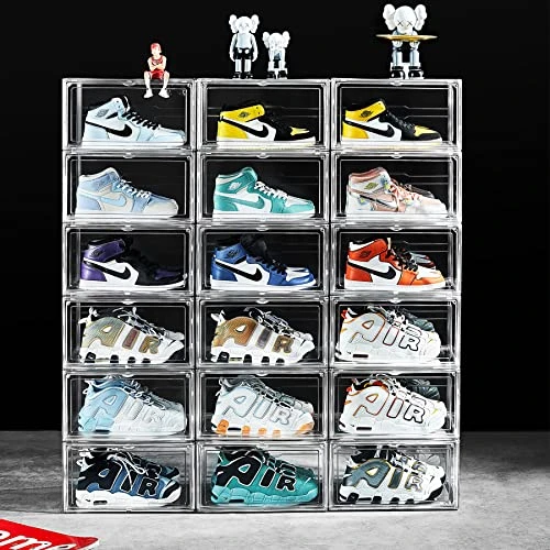 - 【TRANSPARENT DESIGN】The acrylic shoe box provides a 360° clear view of your favorite shoes and protect them from dust and moisture. You can find your shoes in seconds! You can not only display your favorite limited-edition shoes, but also making your home or your bedroom looks clean and elegant.