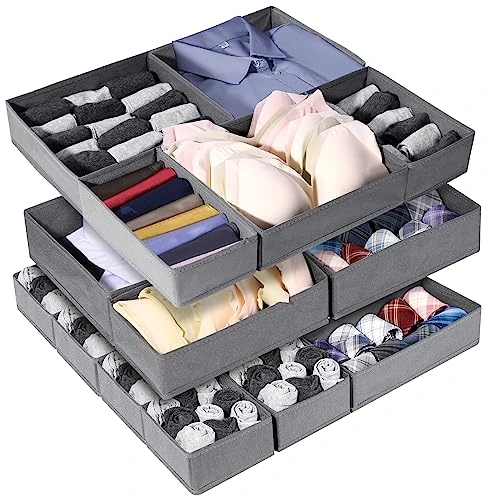 - 【MULTIPLE USES】5 x large size underwear/panties organizer, 5 x middle size bra or scarf organizer, 5 x small size sock organizer.The lingerie organizer allows items to have their own separate space, keeping your things tidy and helping get rid of the mess. Great storage helper for underwear, bras, socks, ties, belts, scarves, t-shirts, towels, lingerie, accessories, etc.