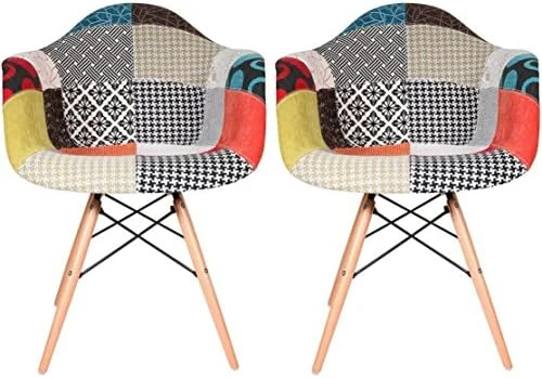 - Set of 2 fabric Plastic Dining Room Chairs – High Quality Armchair – Wooden Eiffel Legs – Lounge Chair