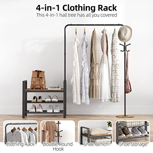 - Sturdy and Stable: The sturdy 19mm steel frame, and 12mm quality medium density fiberboard create this robust coat rack whose shoe storage bench supports up to 350 lb for you to sit with peace of mind. The anti-tip kit adds to the overall stability. Please attach the coat rack to the wall with the anti-tipping kit for safety.