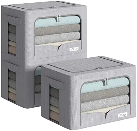 - 【Foldable & Stackable】 The Frame storage bin with stackable metal frame can keep full shape standing.The storage baskets won’t be deformed even it’s full. Unique foldable design to save your room space. Collapses flat when not in use for saving place. Easy to expand and reuse.you can put it in the bedrooms, closets, study rooms, office, put over the cabinet, or under the bed.
