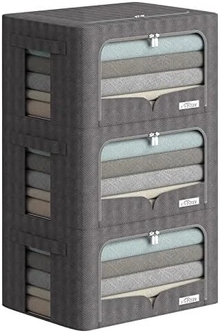 - 【Medium Storage Set of 3】 Each package contains 3 bins, capacity size: 15.7×11.8×11.8inch(36L).this size is ideal to store and protect seasonal items, clothing ,blankets,etc. The access to the top or front is all nice features, it easy to store and remove your clothes and bedding.