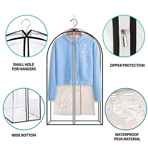 - 【All Clear Material】The hanging garment bag is made of thick PEVA material,which helps you see easily and pick out the clothes.