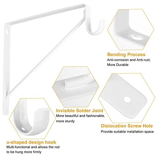 - MATERIAL – Closet Rod Support Brackets are made of high quality steel, white finish, durable, elegant design complements closet décor. White closet rod bracket is fit for 1.3-1.5Inch diameter rods.