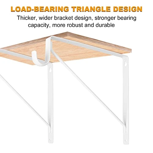 - LOAD-BEARING TRIANGLE DESIGN – 10.8 inches Depth Wall Shelf and Rod Brackets are designed by triangular structure, provide good stability. Maximum load is 136kg / 300lb per pair