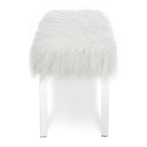 - Includes one bench. Comfortable padded seating. Faux fur accented seat. Clear acrylic legs. Scratch resistant base. Design/Look : Modern & Contemporary. Material : Acrylic, Fabric. Finish : Natural Finish. Pattern : Solid. Bench type : Standard Benches. Print : Solid. Assembly : Assembly Required. Color : White. Product Size: 48.75 In. L X 16.5 In. W X 19.25 In