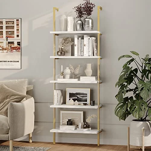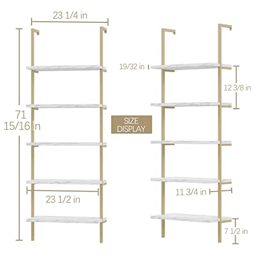 - 【Large Display & Storage】:The industrial ladder bookshelf provides large capacity and space saving features with its 5-tier open shelves design,you can display a variety of different items like your organizing potted plants, framed photos, and your favorite collection of books. Ample space makes your home and room tidy and clean.