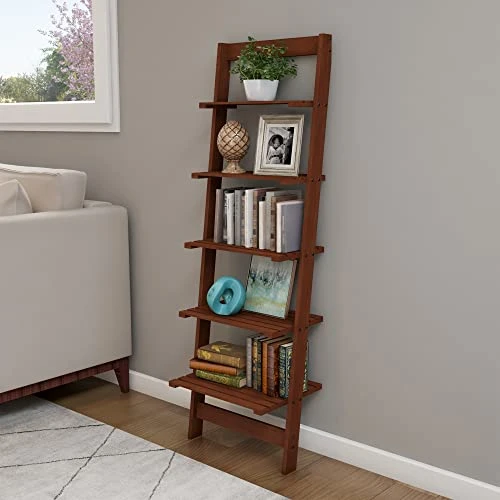 5-Tier Ladder Bookshelf- Leaning Decorative Shelves (Color : Walnut)