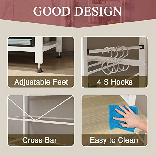- EASY TO ASSEMBLE: Bakers racks for kitchens with storage takes about half an hour to put together. All accessories and board are well packed in the package for your reference. 4 hooks on the side are designed for hanging shovels.