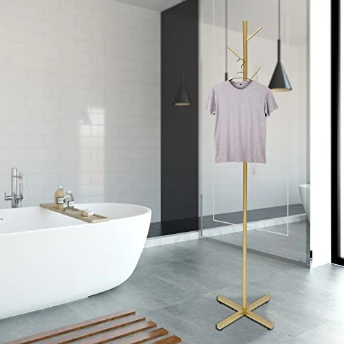 - ✔【Space Saving】This coat rack takes up minimal space in foyers, living rooms, office space and keeps coats and accessories out of cramped closets and easily accessible with hooks all around the rack.
