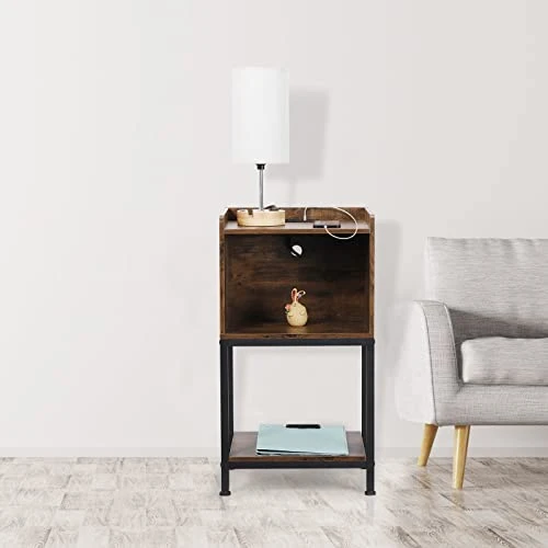 - 【Rustic Style & Vintage Design】The matte black metal frame represents the industrial style, while the brown wood panel represents the retro design, a perfect pick for your bedroom, living room, home office, it can be used as a bedside table, couch table.
