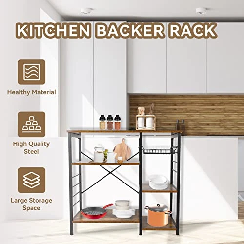 - 👉【MULTIPURPOSE KITCHEN STORAGE SHELF】: Be it a snack rack, coffee bar, flower rack, decoration rack, this kitchen shelf organizer rack can meet all. Compact enough to fit any room but large enough to be a home for decanters, pots and pans, crockpot, mugs, and more.