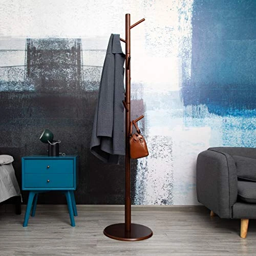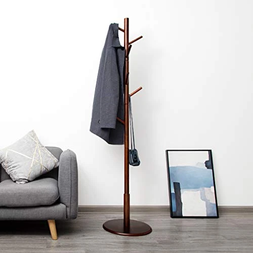 - The 8 natural and smooth hooks are arranged in a spiral way, which are matched with the round base to takes up less space make the coat hanger more stable and sturdy,even when it’s loaded with multiple pieces of clothing and accessories.