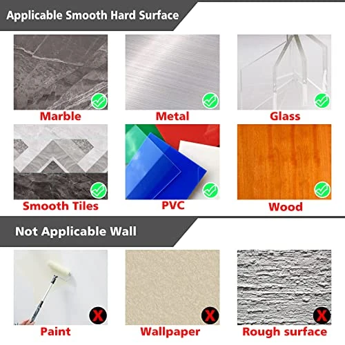 - 【Application Surfaces】 Self-adhesive hooks can be used on various smooth surfaces, such as tiles, marble, wood, ceramic, mirror glass, etc. Not suitable for non-smooth wallpaper walls or plaster walls or any rough-textured surfaces.