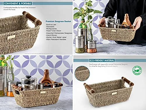 - Seagrass baskets adds warm vibe, stylish texture & character, complement most home color schemes.