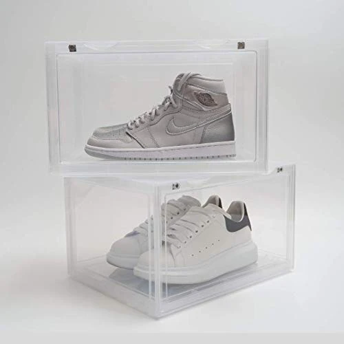 AEAS – Clear Plastic Stackable Foldable Shoe Boxes, Pack Of 2 Drop Front Shoe Container Organizer With Magnetic Closure For Sneaker Collection For Men And Women