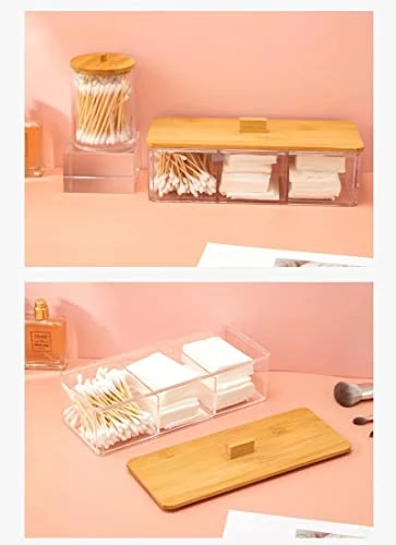 - ✅【Bamboo Lid】This clear plastic jars with elegant bamboo lid, modern design and functional. Bamboo lid design easy to open, prevent the q-tips or other essentials from dust or humidity.