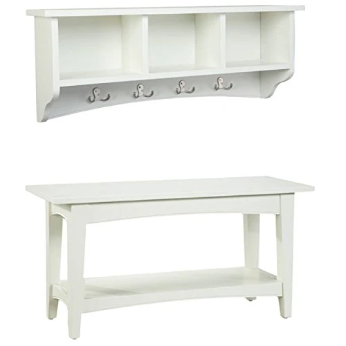 Shaker Cottage Bench and Storage Coat Hook set can be used in the mud room, entryway or anywhere you need a bit more organization. Sit on the bench to put on or remove your shoes; store your keys, gloves and more in the storage hook’s cubbies. Eight hooks for all your coats and accessories. The coat hook is fully assembled and includes a French cleat for easy hanging; the bench is sturdy and easy to assemble.