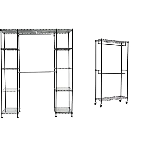 - Product 2: Expandable closet organizer with 2 adjustable-width hanging rods that can be moved up/down in 1-inch increments