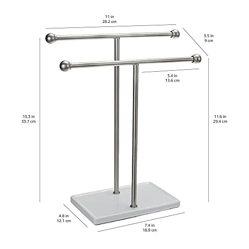 - Upper and lower T-shaped arms for neatly displaying towels; rounded tips help keep towels in place