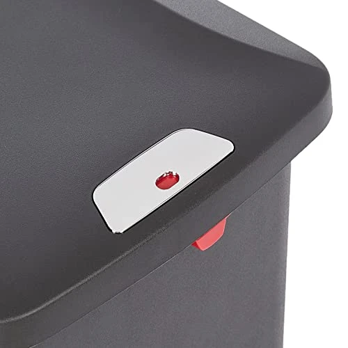 - Includes a black 40 liter trash can made of durable dent-proof plastic with an anti slip base