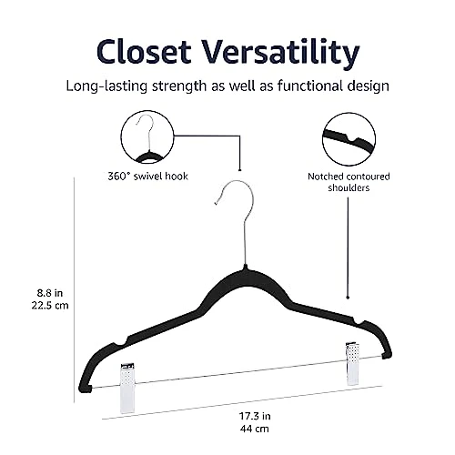 - NON-SLIP DESIGN: Velvet surface prevents items from shifting and slipping; notched shoulders for straps; dual clips firmly hold clothing at the waistline or cuff