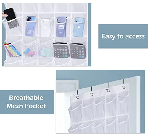 - 【Durable Material】Made of high quality breathable non-woven cloth with mesh tiny pocket,door shoe organizer clear pockets strong double-stitched and non-fading, transparent netting design keep items in view and saving you time from blind searching;