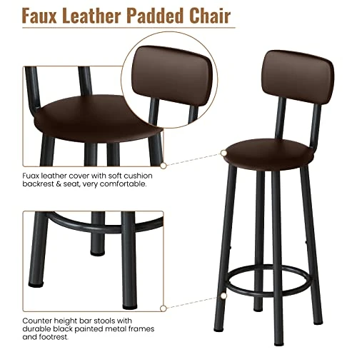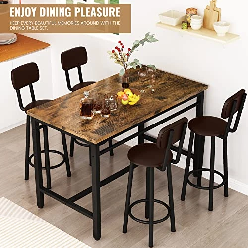 - 【DURABLE & COMFORTABLE 】 The dining room table set for 4 is made of premium MDF board table and sturdy iron frame, our bar tables provide you with plenty of relaxing space for you to have a drink with friends or enjoy breakfast. The stools with metal frames are super stable without wobbling or shaking. Faux leather stools and backrest filled in soft cushion which provide you extra comfy seat experience.