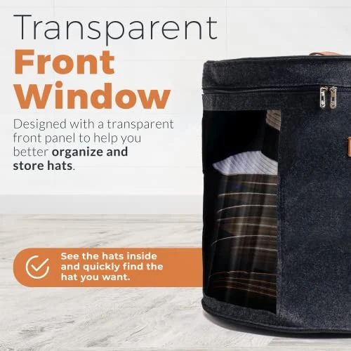 - See What’s Inside With a Peel: You’ll love the transparent window on the side that allows you to see the hats inside with a quick glimpse. Our hat boxes for women storage also have double zippers that extend all the way around for fuss-free access.