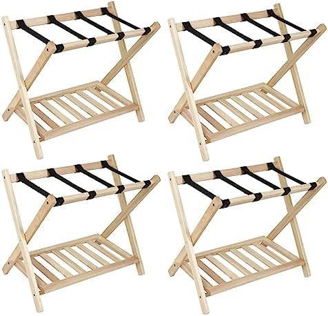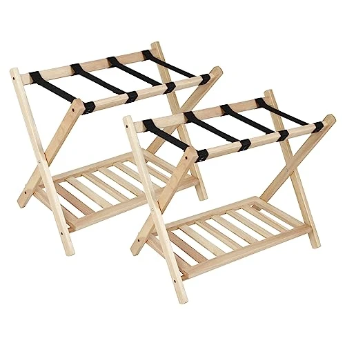 - 【Heavy Duty Structure】— Exceptionally strong structure, can accommodate most luggage of 150 pounds, X shape can effectively prevent shaking, will not collapse. The suitcase shelves Luggage holders is made of rubber wood and will not bend or break. Its surface and edges are finely polished so it won’t scratch luggage and bags.