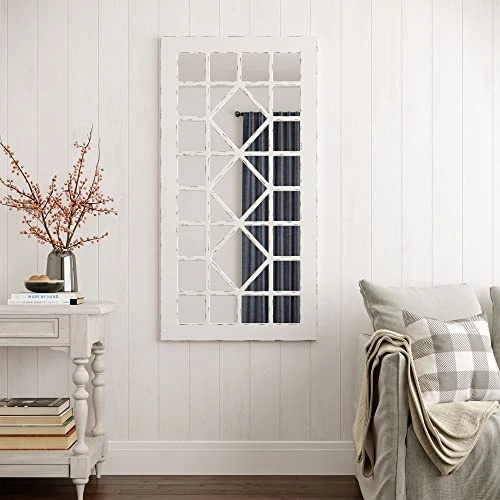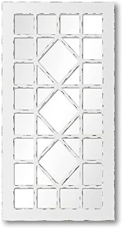- Dimensions: Wood Wall Mirror Frame: 54″ x 1.5” x 24″. Windowpane Mirror Glass Dimensions: 48.25” x 18.5”. Wooden Mirror Frame Width: 2.5″. Color: Ivory.