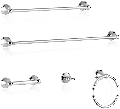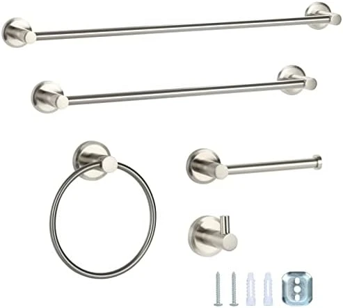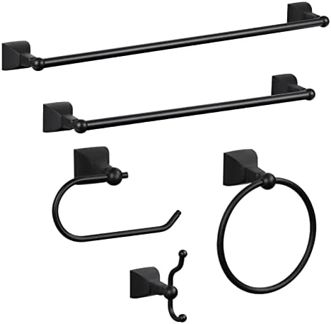 Bathroom Hardware Set Of 5, Zinc Alloy Wall Mounted Bathroom Accessories Kit,Towel Bar Accessory Set Includes 24 Inch Towel Bar,18inch Towel Rack,Toilet Paper Holder,Towel Ring,Hook