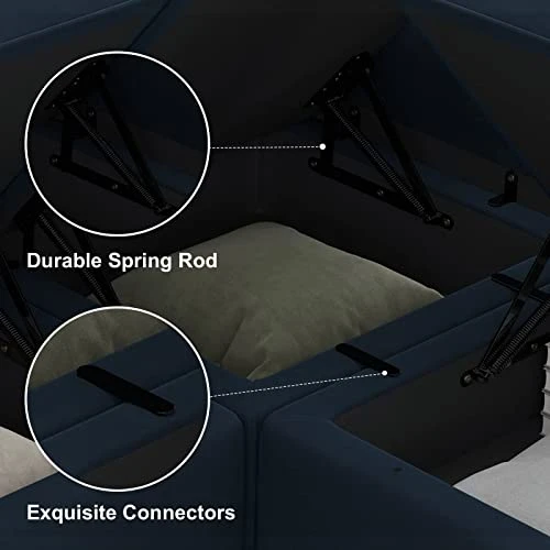 - Invisible Storage Spaces: Each seat of modular sectional sofa has a hidden storage and the lid automatically stays open in the position so that you can pick out and put back the things you are storing conveniently, which will save spaces and complement the existing interior design. Storage dimensions: 22.40”(L)*22.40”(W)”*5.70″(H)