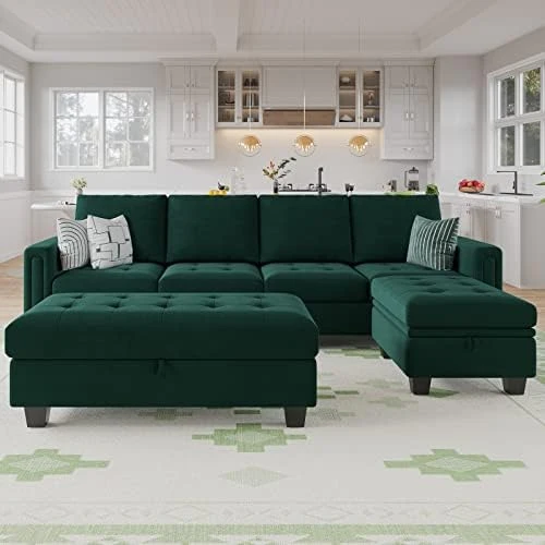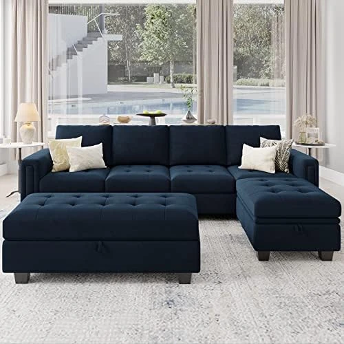 - Space saving storage ottoman:This sectional sofa set contains a large ottoman and a small ottoman.Both ottomans have built-in storage space,you can place magazines,toy,remote control,pillows etc,saving space for your room.