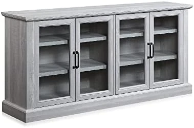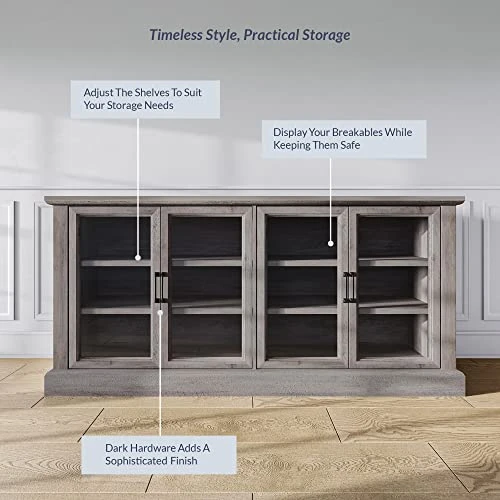 - [FRAMED CABINETS] Cabinets framed with glass doors help you showcase collectibles, cherished keepsakes, and decorative dishware. Metal hardware on the cabinets lends a stylish accent.