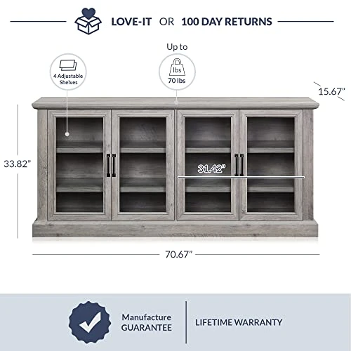 - [AMPLE STORAGE] 2 large cabinets with built-in adjustable shelves make it easy to customize the storage space to keep kitchenware, fine china, or wine bottles.