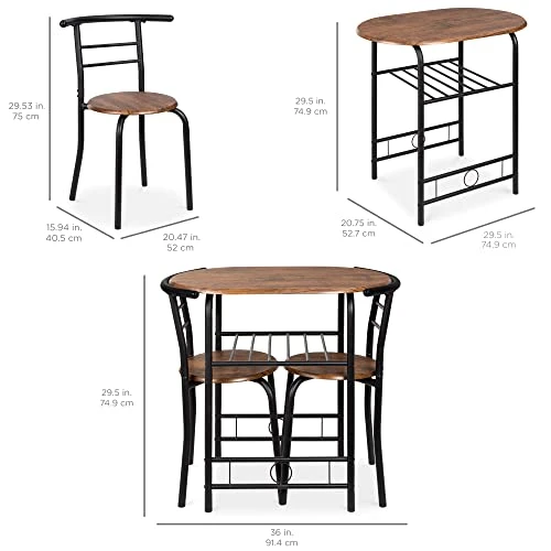 - COMPACT SET: 3-piece wooden table and chair set is the perfect addition to small areas, such as dorms and apartments, for an intimate meal with your favorite guest; TABLE DIMENSIONS: 29.5″(L) x 20.75″(W) x 29.5″(H); Table Weight Capacity: 110 lbs.