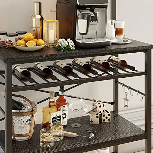 - Simple & Practical Design- Come with a wine storage rack that can store 6 standard-size wine bottles, 8 S-shaped hooks for hanging pots, pans, utensils, oven mitts, and more. Multi-function shelves rack can be easily matched with different decoration styles
