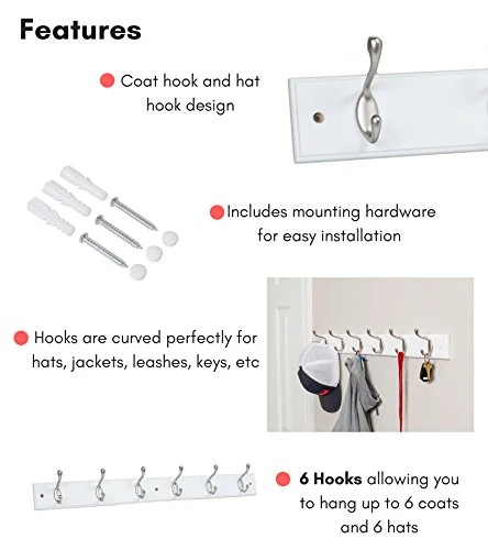 - DECORATIVE & DUAL HOOK DESIGN: designed to add a beautiful accent to your home entryway, foyer, hallway, bathroom, or bedroom. Stylish designs in varying sizes and colors to match your home dรฉcor. Hat and Coat hook design allows you to hang more coats and hats than single hook racks