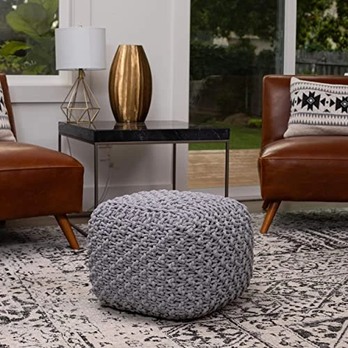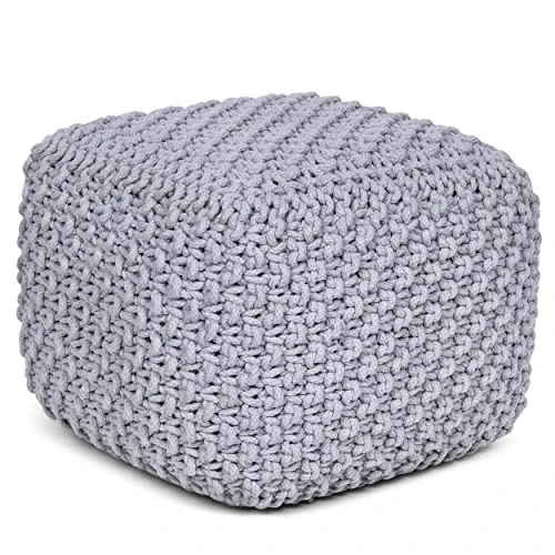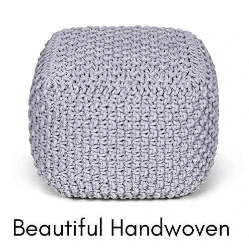 BIRDROCK HOME Square Pouf Footstool Ottoman – Grey – Knit Bean Bag Floor Chair – Cotton Braided Cord – Great For The Living Room, Bedroom And Kids Room – Small Furniture