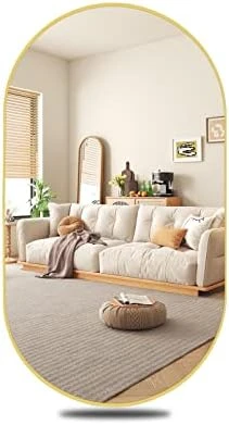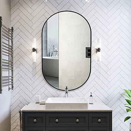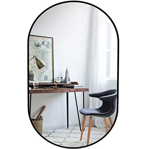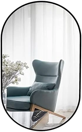 - 【PERFECT DECORATIVE MIRROR】 Perfect pill shaped mirror elongated aluminum thin framed mirror hanging Vertically & Horizontally,ideal for limited space.As a vanity mirror or a decorative mirror in your bedroom, living room, bathroom, gallery wall, entryway, salons even shops.
