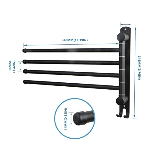- ROTATES 180°- Multiple swivel arms allows you to spread out the desired arms for easy drying, and swivel them back against the wall to save space.