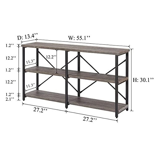 - Dimensions: 13.39″D x 55.12″W x 30.12″H. Height between shelves: 12- inch without the thickness of the shelf.