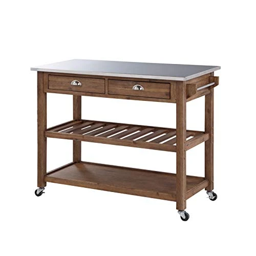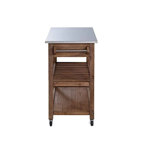 The Sonoma Wire-Brush Kitchen Cart is your all-in-one prep station and storage solution. This portable kitchen island is a versatile and elegant addition to any home, no matter the size. If you have a cramped kitchen, use the caster wheels to roll the cart out whenever you’re cooking, then wheel it away to a discreet corner for storage when it’s not in active use. The stainless steel top is a perfect multi-use prep surface, while a pair of drawers, an adjustable shelf, and a towel rack ensure you keep all your must-have utensils within easy reach. The steel’s chrome finish contrasts beautifully with the wire-brushed wood, creating a style chameleon which looks at home in industrial and farmhouse spaces alike.