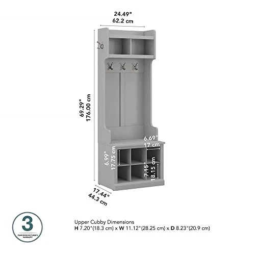 - Narrow Hall Tree with Storage Bench measures 24W x 17D x 69H once assembled