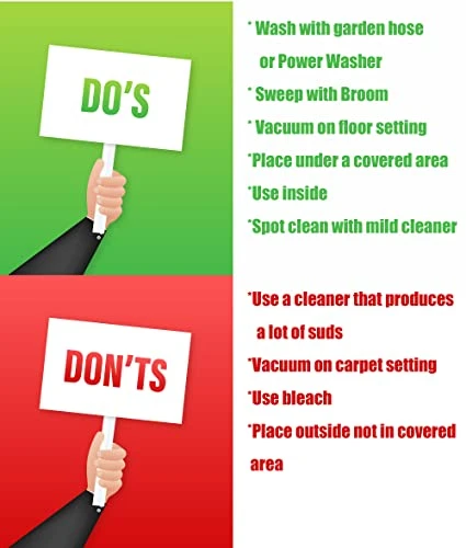 - Easy to Clean: Maintenance is a breeze – simply rinse with a garden hose or use a power washer to eliminate dirt. No suds-producing cleaners necessary. Alternatively, vacuum on floor setting for indoor cleaning.
