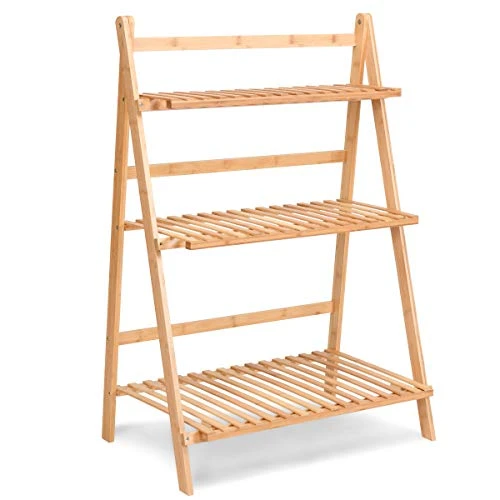 - The bookshelf is made of natural bamboo and features a ladder shape, which ensures the solidness and stableness. It does not wobble or fall easily while in use.