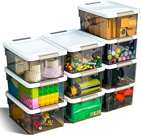 - 【Keep Items Dry】Our stackable lidded storage bins own 2 durable buckle latches keep the lids securely so as to keep the inside items dry and dust proof;