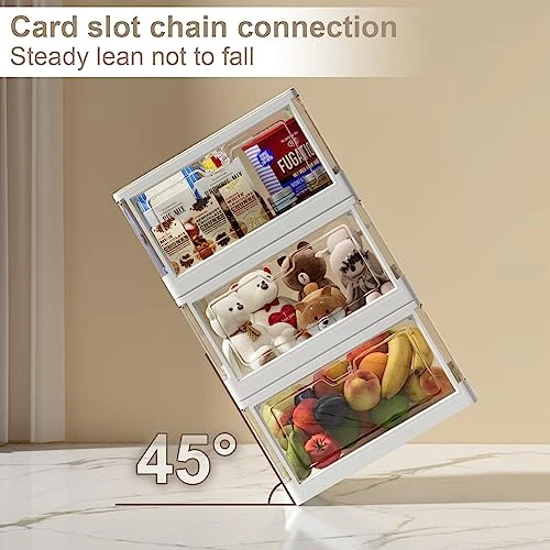 - 【Assembly Easily & Stackable】The storage boxes with lids are collapsible and foldable and comes in flat station, just raise up 4 side panels and tighten them together, and close the lid. You will get the amazing containers for organizing in 10 seconds! When they are not in use, the collapsible storage bins can be folded up and stay under the sofa, will not take up space.