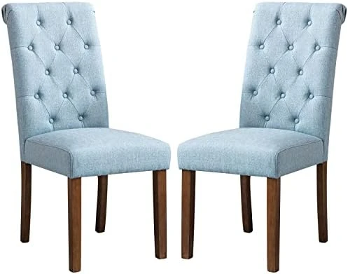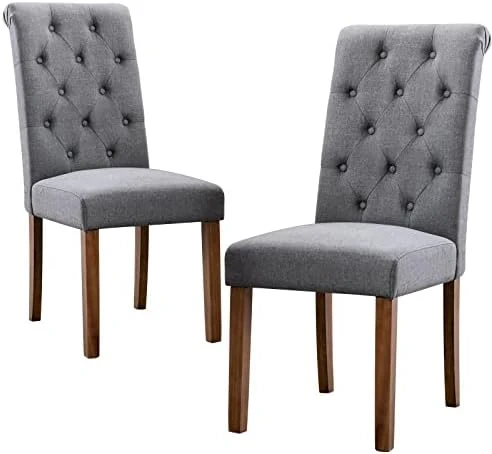 - 🌲Style Your Dining Area– Featuring a high back, a beige, or grey fabric cover and fancy, deep tufted buttons on the back, these padded kitchen chairs brings a touch of country charm, taking your dining area to the next level.